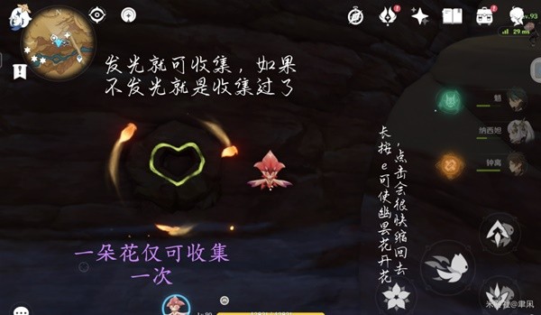 忧昙花可收集时的样子,一朵花只能收集一次,如果只是e花很快会缩回去,长按e才能站在花上