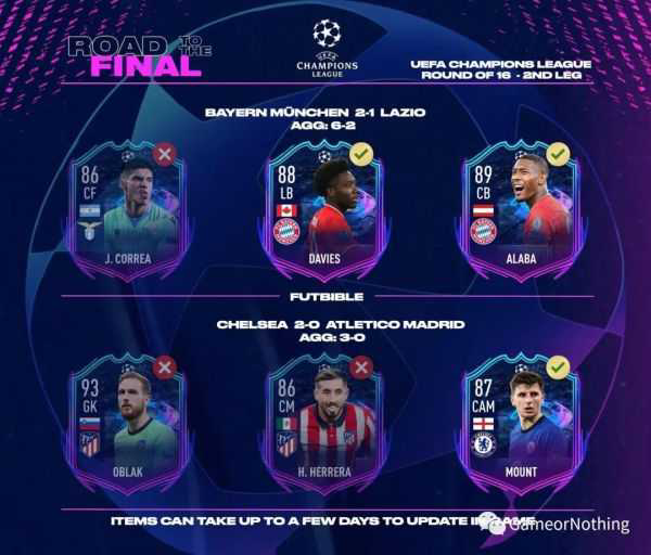 欧冠今日凌晨结束本周的比赛,曼城,皇马,拜仁,切尔西 分别战胜对手晋级,相应球员的欧冠动态卡即将升级。