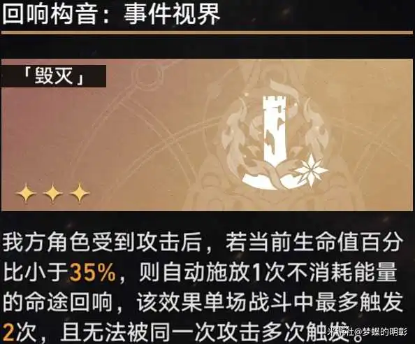 这个祝福保证了毁灭神教的下限,只要有回响构音将血量压到40%即可吃到非常不错的加成,面对缺少aoe的敌人能保证输出的【战意】层数。