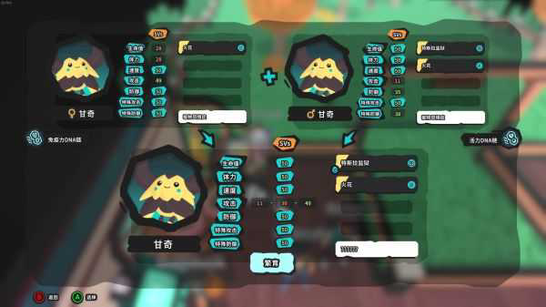 可能是因为攻击对甘奇的提升不是很大,所以他选择只搞个6V,左边锁了双防,右边锁了命体,速度特攻重合,所以孵出来的一定是命体速度双防特攻。