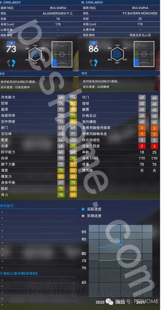 使用评价:M·CHOLAKOV是近三十年来足坛最流行的那种左后卫,也就是攻强守弱,善于前插到边路起球,偶尔跑到肋部来一两脚远射,防守主要靠前场反抢,生涯巅峰是一次对方3名球员从他面前突破防线,1v3把对方3名球员搞得手忙脚乱最终反抢成功。