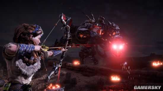 女主回想起罗斯特训练的最后一课,就是让他单独猎杀一头强大的机器,临行前罗斯特送了她一把弓,这把弓是可以发射火箭的,罗斯塔还教会了她火箭的制作方法。于是女主就地取材做了很多火箭,把据点里的火药桶一一射爆,那些劣化的机器就这样倒在了火海里。