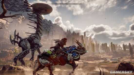 从没离开过诺拉圣地的主角一路长途跋涉 见识到了世界的广大,也见到了很多没见过的机械兽,期间还看到了一头叫做风暴鸟的会吐冰的巨大飞行机械兽,为了逃离它女主差点付出了生命的代价,不过还好跟罗斯特学习的技能比较过硬(其实是身体素质过硬 被打怎么也打不死 无脑吃血瓶秒回血2333)总算是逃开了。