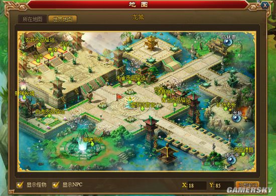 打开大地图,在“所在地图”和“世界地图”的场景中,选择一个地点,也会出现一个神行靴的快捷图标,它便可直接传送至目的地,十分地方便。