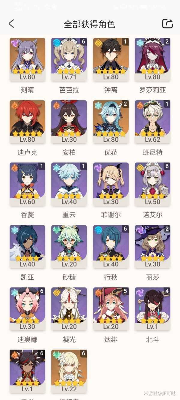 主c 如雷4刻晴 苍白2角斗2优菈(因为还没体力刷圣遗物) 暂时用的第一个主c罗萨莉亚的圣遗物 面板一般 应该都没小毕业