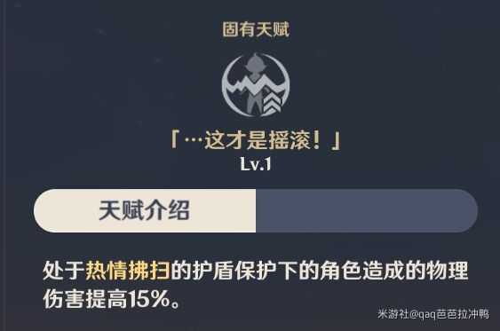 减少e命中敌人所需的个数,也就是说e到两个人即可触发最高级的护盾,处于护盾下物理伤害提高15%