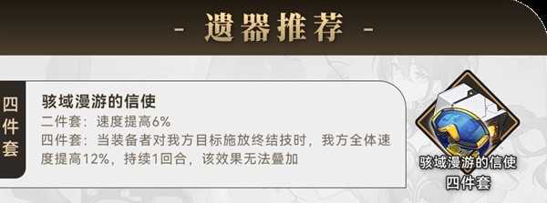 (2)如果击破特攻超过了160%,也可以考虑选择信使四件套,有不错的辅助能力,配合天赋能给全队提速不少
