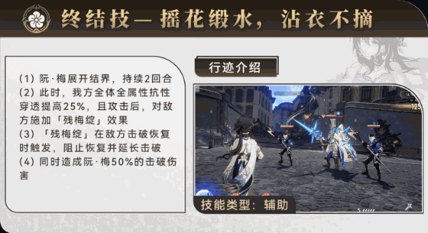 (5)被「残梅绽」延长行动的敌人,在韧性恢复前,无法再被施加「残梅绽」(即不能无限推条)