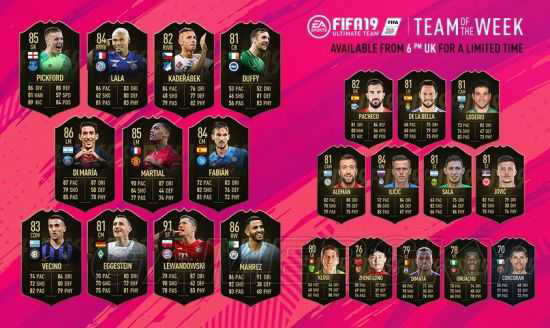 《FIFA19》每周会根据球员在现实比赛中(联赛、杯赛、国际比赛日)的表现评选出最佳阵容,并为这些球员制作黑卡(TOTW卡),这些球员卡抽取时限为一周,那么下面就为大家带来第6周最佳阵容,由郑龙、莱万多夫斯基领衔,各位朋友来看看吧!