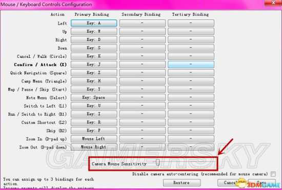3、找到所有设置下方的Camera Mouse Sensitivity(如图所示),左右拖动滑块就可以设置鼠标灵敏度啦。