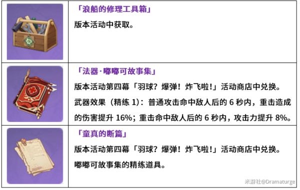 (3)小道具「风佑之羽球」(★4):完成「夏日征程!千万要注意安全」任务获得。以纯净的鸟羽和坚韧的布料所制作的羽球,或许拥有某种奇妙的力量…