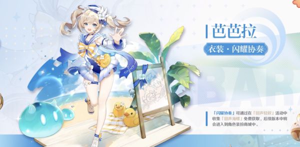 获取方式:在1.6活动期间,通过「回声轻叙」活动,收集指定数量「回声海螺」,即可获得芭芭拉衣装「闪耀协奏」,1.6版本结束后,「闪耀协奏」将会上架商城,售价1680创世结晶。