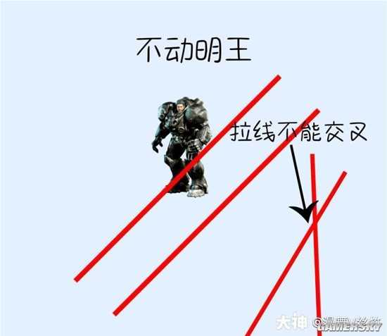 注意点7:拉线不能重合,普通的是两个人分开拉远,英雄的和雕像拉平行