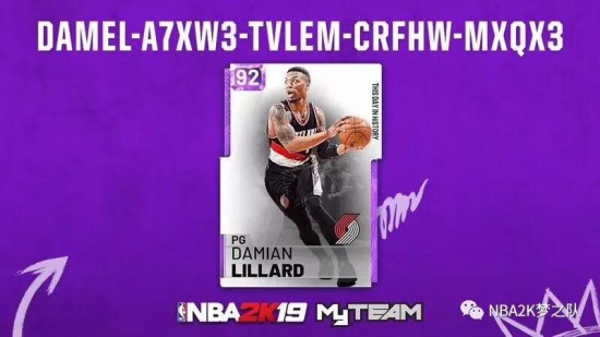 时隔多日,2K终于又想起了还有“历史上今天”这回事,这次的主人公是大家非常熟悉的达米安·利拉德,下面就为大家带来《NBA2K19》紫宝石利拉德兑换代码,祝大家好运。