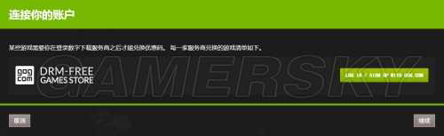 在弹出的页面中登录GOG平台账号,并下方绿条“IAGREE”同意NVIDIA使用账号信息的授权。