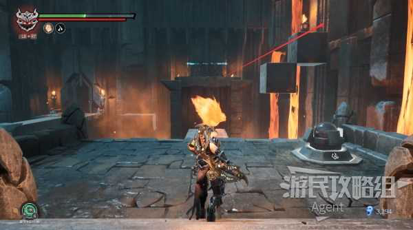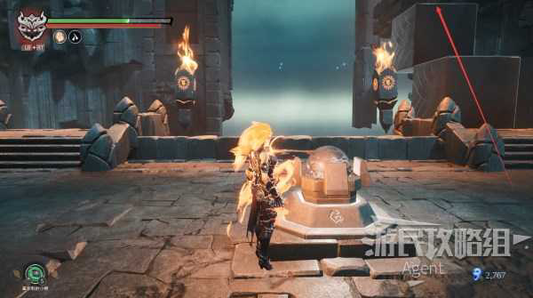 切换火焰荒魂,在岩浆里就不会掉血。岩浆里和柱子顶都翻翻,有几个收集品。