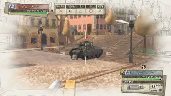 主角一行人隶属的 E 小队,使用的战车「海芬号(ハーフェン号)」有三种不同的攻击手段,对装甲厚重的战车也很有效的「穿甲弹」、命中后会爆炸能有效克制步兵的「榴弹」,以及主要用在对步兵攻击和迎击上的「机枪」。