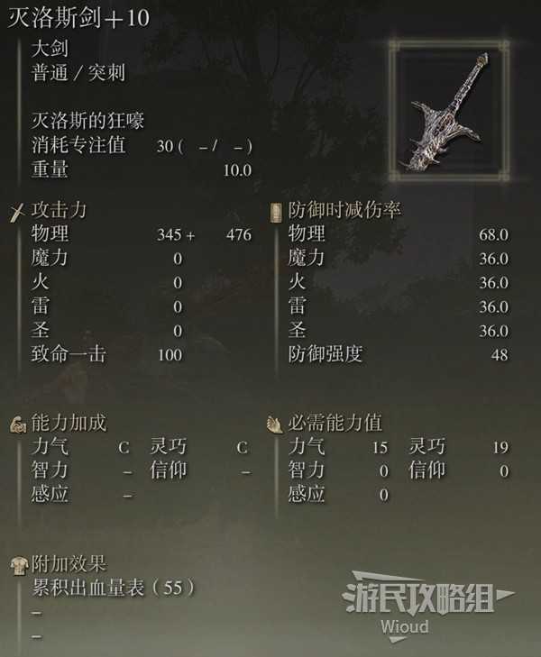 携带灭洛斯剑+10,击杀敌人回复专注值。