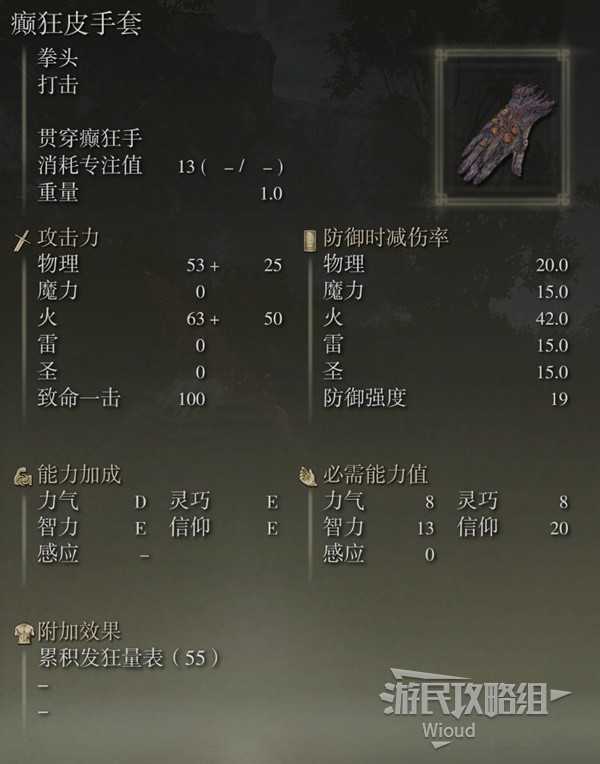 第二个左手武器携带癫狂皮手套,这个手套主要用来累积发狂量表。