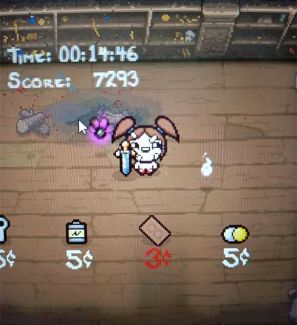 4.这个像烂柿子一样的东西,被动道具,效果:有几率发射出特殊红色子弹,使敌人进入混乱状态,混乱状态下的敌人会主动攻击别的敌人(对长条型的敌人有奇效,长条形的如:钻地怪,黄金蟒会自己攻击自己),算是一个高配魅惑效果。
