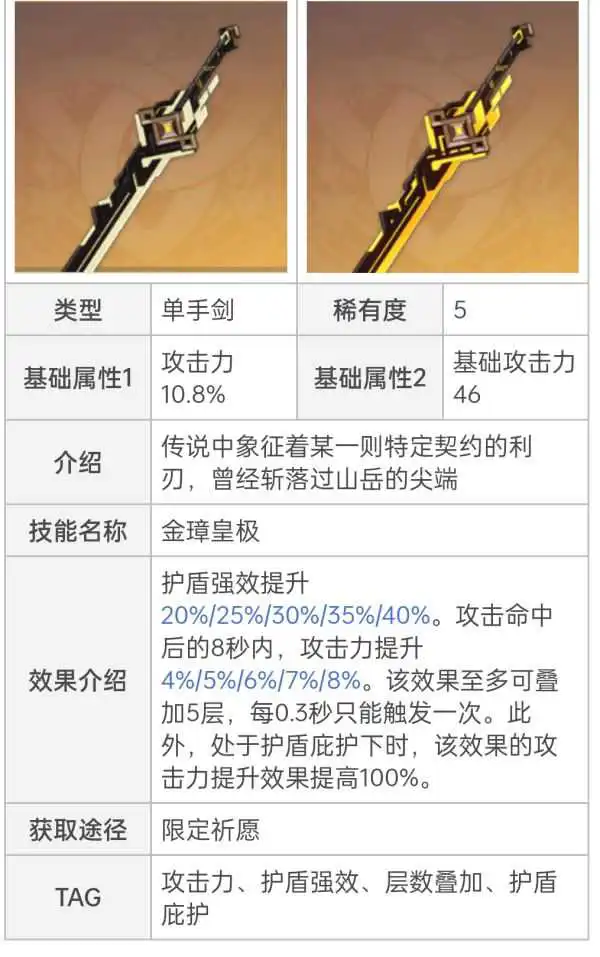 2.护盾下加成翻倍,此特效只有在装备者在触发攻击特效时身上拥有护盾时才可触发,且切人后攻击加成不会变少。