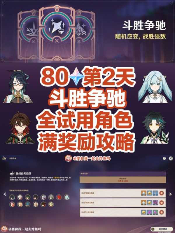 正文 《原神》斗胜争驰第二关试用满分攻略「必看」 游戏小天使 /2025-11-19 21:25:06 /2 浏览量 1119 《原神》斗胜争驰活动中玩家们可以使用试用角色过关,想要知道如何获得高分的玩家请看下面“要和我一起去炸鱼吗m”带来的《原神》斗胜争驰第二关试用满分攻略,希望能够帮助大家。 嫁时罗衣羞更著,如今始悟君难托。 -- 展开阅读全文 --