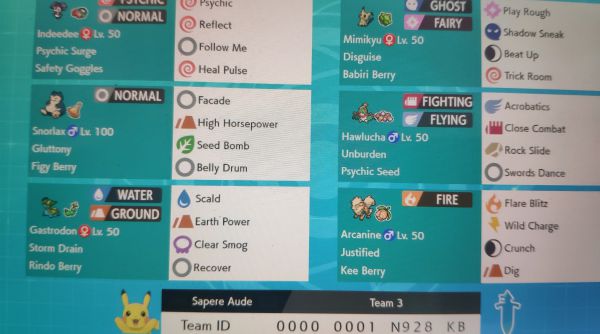 当然,这个队伍也有不好处理的点,班鼠开,九尾喷火龙开,vgc20的卡比核心队以及最近很火的鼠头飞龙组合。因此,最终队伍定格成了第二版。