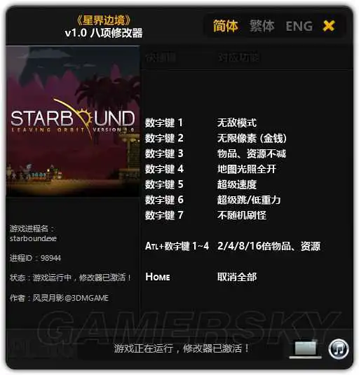 简体、繁体、English,可以切换语言 (切换语言后修改器将把该语言设置为默认语言)