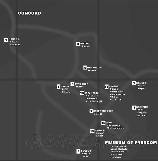 康科德,一个较大的区域,拥有30+的房子,在这之中又有很多的房子可进入,由于刚开始的主线需要前往康科德里的博物馆进行触发,因此康科德是我们必经的区域。而在康科德的一些房子内又有相当多的战利品。