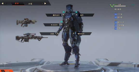 再说说武器,圣歌给出的武器种类其实挺丰富了,不算只有巨像可以使用的自动火炮和榴弹发射器,也有冲锋枪、突击步枪、手枪、狙击枪、轻机枪几个大类,每个大类下面还有小的分类。像突击步枪就可以分两种,一种是三连发神射手步枪、一种是连发的均衡的突击步枪。选择其实挺丰富了,虽然现在测试版中每种类别下面的可选择枪械很少,但可以看出谱系是建好了的,正式版想要添加枪械也简单。