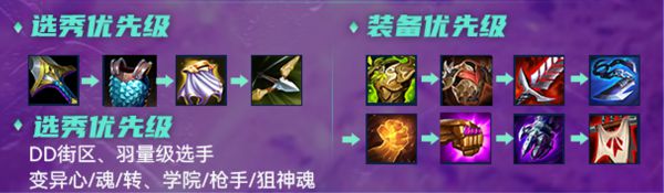 大嘴的装备优先级低于盖伦,大嘴普攻与技能伤害双高棋子,攻速与法强均吃,装备选择主要看对局搭配,有啥用啥,巨杀/羊刀、法爆/帽子、正义最优。
