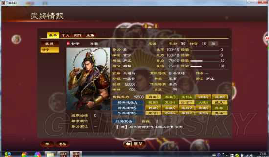 另外说明的是,太守也可以,把自己武将忠诚度不高的,放在一个城里,然后任命一个重臣特性为公正无私的为太守,然后每个季度那个城里的武将忠诚度会慢慢提高