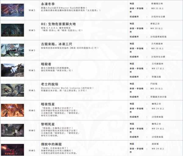 《怪物猎人世界》冰原DLC更新到了15.1版,并且从12月4日开始,几乎所有的活动任务都再次开放,玩家可以刷个够,此前没拿到的奖励也能借此机会去获取了。下面为大家带来《怪物猎人世界》冰原15.1版活动任务汇总 ,一起来看看吧。