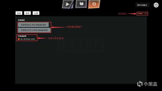 开发者选项位于设置页面右上角一个单独的标签页中,名称为“生成版本”+版本号。在该页中勾选开发者选项。