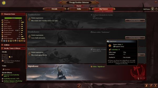 每位食人魔领主都能取得四个诨名,各自都有不同的解锁条件。对于我们的传奇领主——格雷苏·大金牙和『屠灭者』斯卡拉格,以及统领其他军队的暴君和屠宰大师来说都是如此。传奇领主有四个特别的选择,而其他领主则会根据领主类型从更大范围的备选池中随机组合。