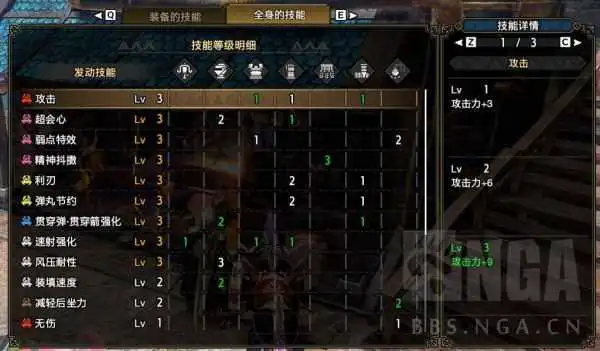 Ver.12.0.0版本对于贯通轻弩而言极大地提升了装备上4级孔的适用性,贯通珠2,浑身珠2都增加了配装的灵活性,个人目前配装情况如下: