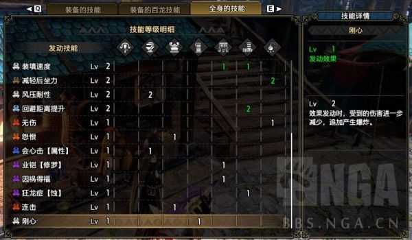 刚心对于轻弩的重要性:随着怪异化等级的提升,怪物的攻击力已经提升到大量招式可以秒杀满血轻弩玩家的程度,刚心的出现等于有了战斗可多次触发的大毅力效果,对于提升容错率极其重要。