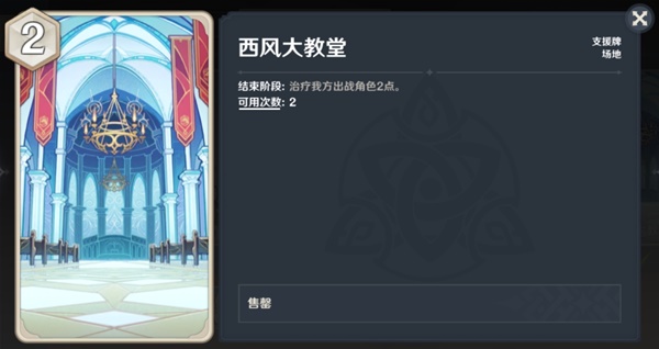 队伍运作需要行秋较长时间的站场,所以队伍特别需要回血保命。并且考虑到队伍每回合有4个左右的骰子可供自由支配,这张「大教堂」在一众回中就非常适合队伍,2费总共回4血,并且只占一张卡位。直接下2。