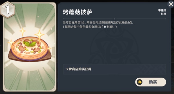 「大教堂」只能下2,2/30的概率说实话还是太难上手了。作为「大教堂」的低费替代,「披萨」这张卡就相当不错,1费拍下去当场回1血,结束阶段再回1血,下回合结束阶段再回1血,总共三血,配合风鹰剑或者行秋自己的护盾完全可以吃满效果。