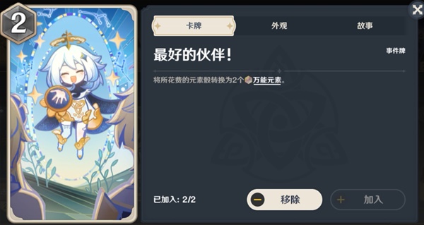 另外有一张卡图是凝光的卡「一掷乾坤」,效果是重丢任意数量骰子,最多3次,也是用来解决骰子事故的,可以平替派蒙。但因为重投骰子也是随机的,所以还是会有那么一丢丢的机会还是会遭重,所以笔者没有投入「一掷乾坤」而是选择了这张2费派蒙。