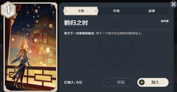 「鹤归」也是一张功能性很强的牌,使用技能后切换到下一个角色,“下一个”的意思就是是向右切换。可以下1,下了的话注意角色排序。