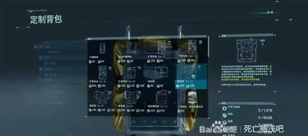 背包栏有手榴袋、额外收纳袋、充电宝、稳定器、弹药袋、背包罩6种类型的道具。手榴袋、充电宝都是得到背包以后自带的道具,收纳袋一个就代表能装一组手雷,大号手榴弹则是能装三组手雷。
