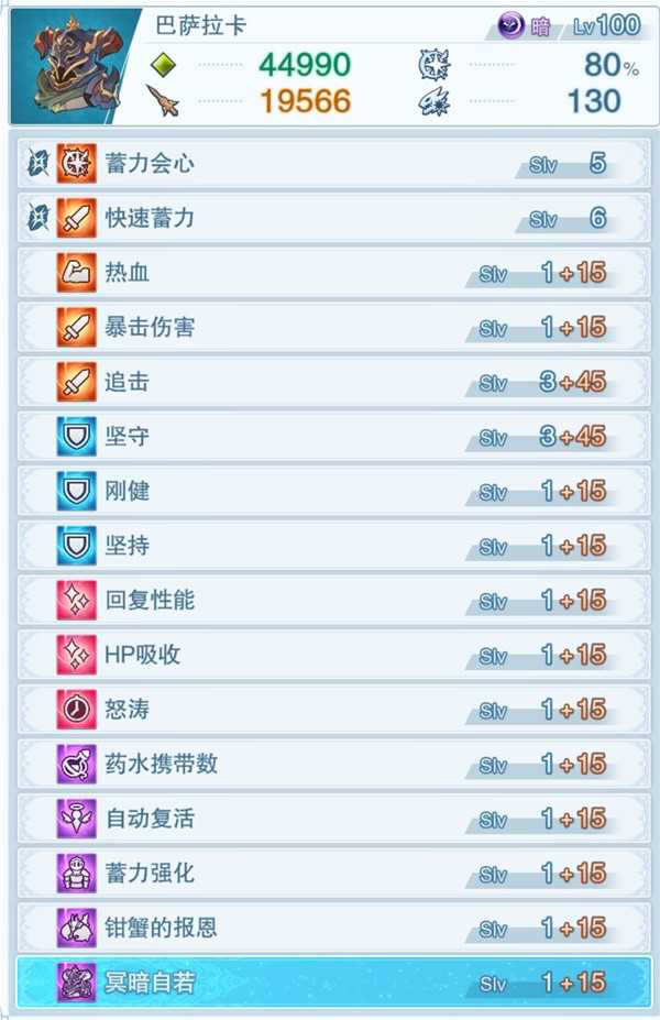 9、豪胆,自动复活,药水持有数量等。功能性辅助因子,有条件就带。个人觉得复活优先豪胆,因为不死状态结束后的1血经常接豪胆马上翻车,不如自动复活拉起来还能回一半血。