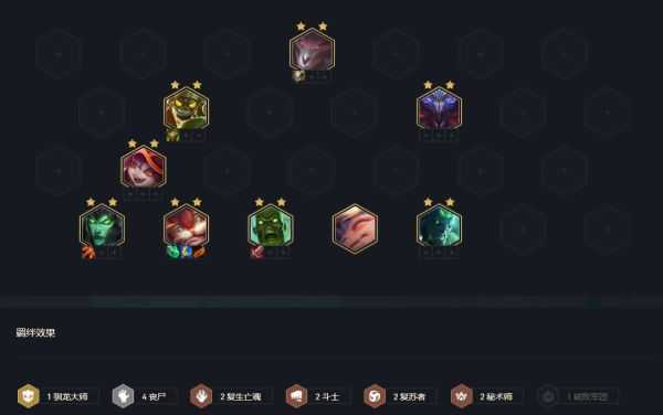 关键羁绊:4/5丧尸+2复生+强势输出点。阵容主C大头,副C丧尸构造图(塞恩)。