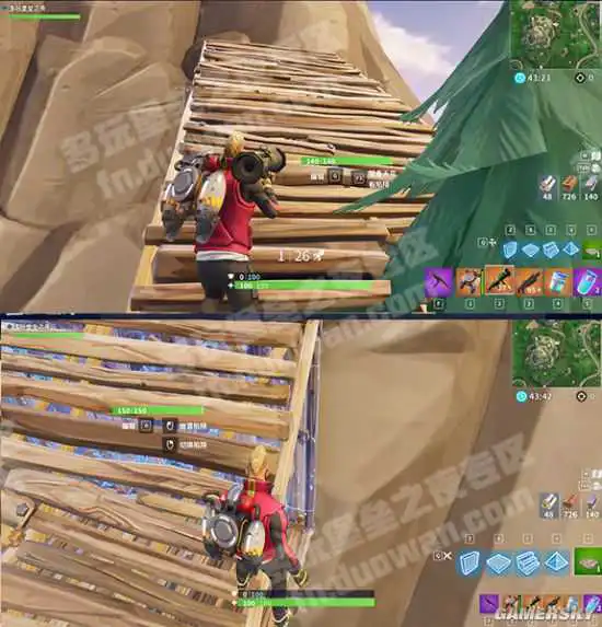 相信很多玩家都经历过被大佬滑翔贴脸或是高板贴脸刚枪的一幕。但如果我们在自己的底座或者侧边建造一个隐藏的陷阱,那么结局很可能会反转,一旦敌人跳在你的板子上,那么就等着他的惊叫吧。事实证明这套非常有效,即便是Ninja、Tfue这样的大佬也有在这栽过跟头。