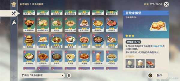 原型菜谱:攻击类筛选-冒险家蛋堡。