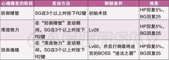 展开能够让我方成员所受伤害减半的力场,在力场解除时还能回复我方全体队员的HP。在展开时力场还会附带攻击判定,能破除敌人的防御状态。