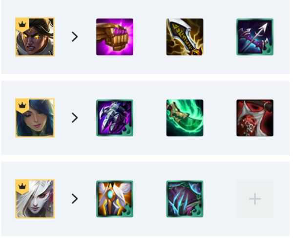 5人口就补充一个寒冰凑出2游侠羁绊打连胜即可,韦鲁斯的装备是这样的黑破甲弓>无尽>法爆,顺序也是按照这样的来,如果后续没有法爆的话可以拿黑/白分裂弓来代替。