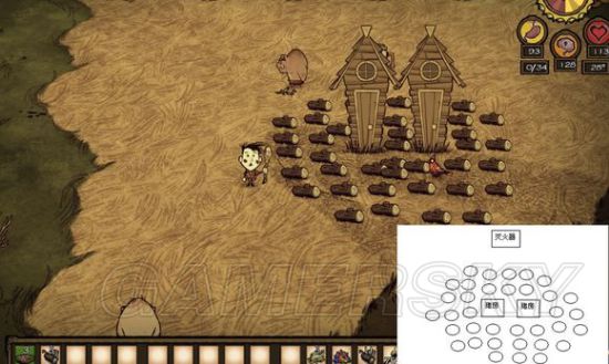 第二,建造一个灭火器,不要太远离猪人房,灭火器建议建造在猪房上面!(地图默认视角)