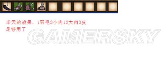 9.期间还会有鸟类乱入,记得带长矛A死,会有很多小肉+羽毛额外收益